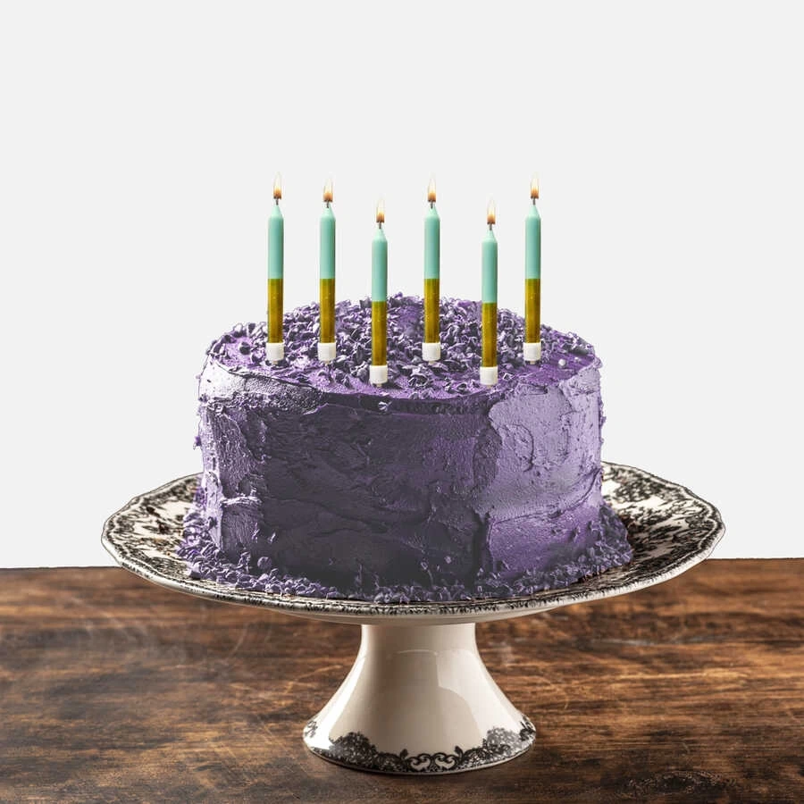 Su yeşili varaklı doğum günü mumu ile birlikte pasta süsleme hazırlıkları yapabilirsiniz.