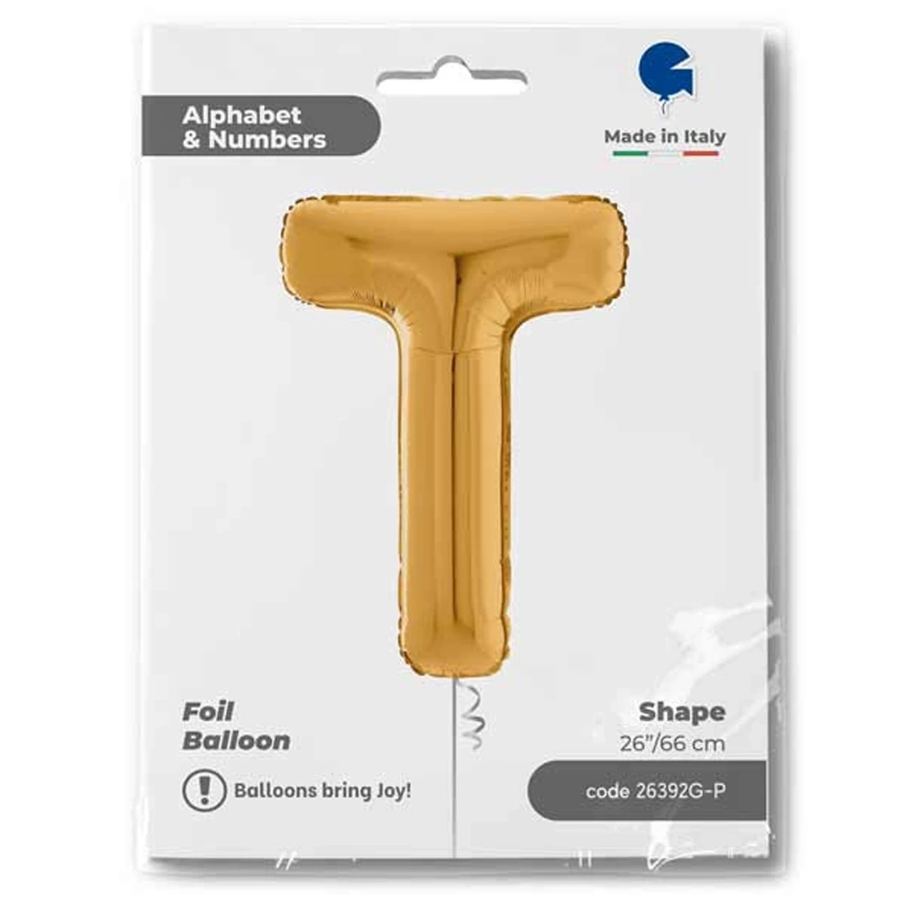 T harf Grabo altın folyo balon 26” ölçüleri ile birlikte çeşitli organizasyonlarda harika bir konsept oluşturabilirsiniz. Renk tonu özel olarak belirlenen harf Grabo folyo balon çeşitleri, şiştikleri zaman da istediğiniz harfe en iyi şekilde benzeyen balonlardır.