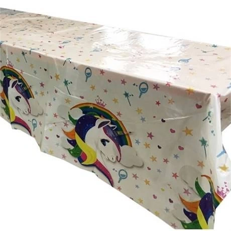 Plastik masa örtüsünün üzerinde Unıcorn görseli olup eğlenceli desenler vardır.