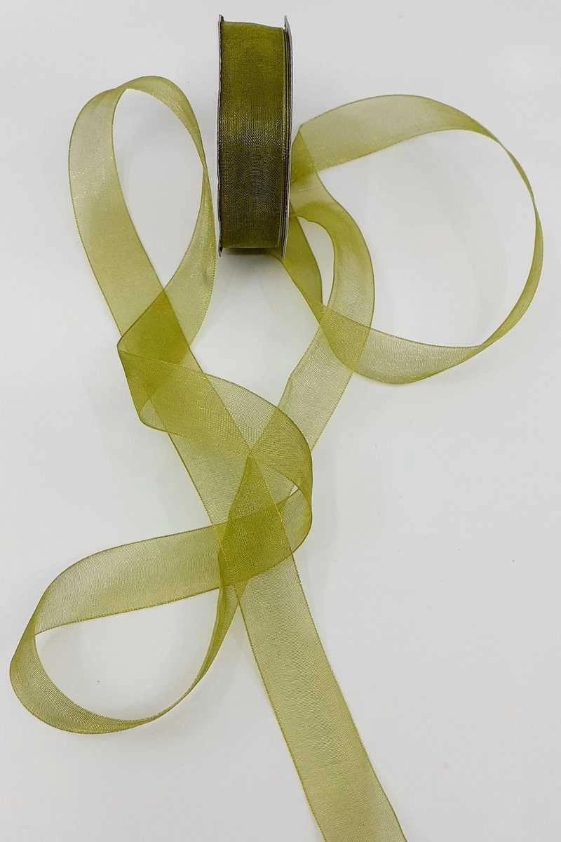 Yağ Yeşili Renkli Organze Kurdele 20 mm.