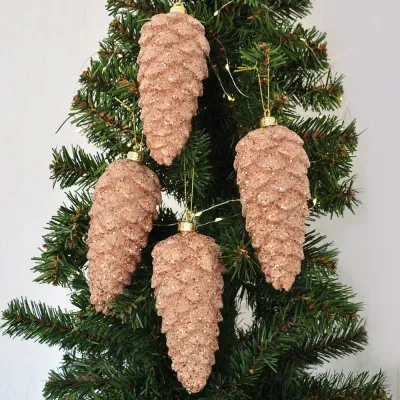 Yılbaşı Ağaç Süsü Simli Kozalak 14cm 4lü
