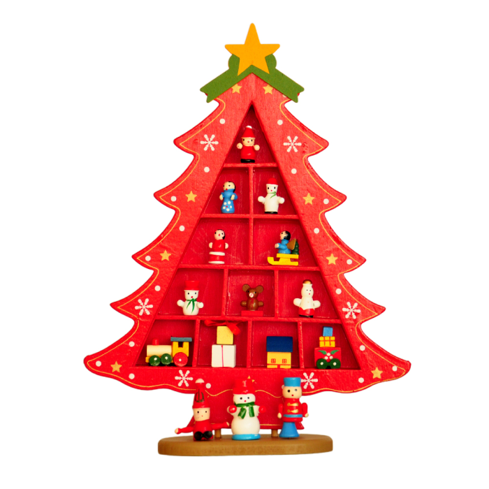 Yılbaşı Ahşap Dekor 29cm -Çam Ağacı Kırmızı-